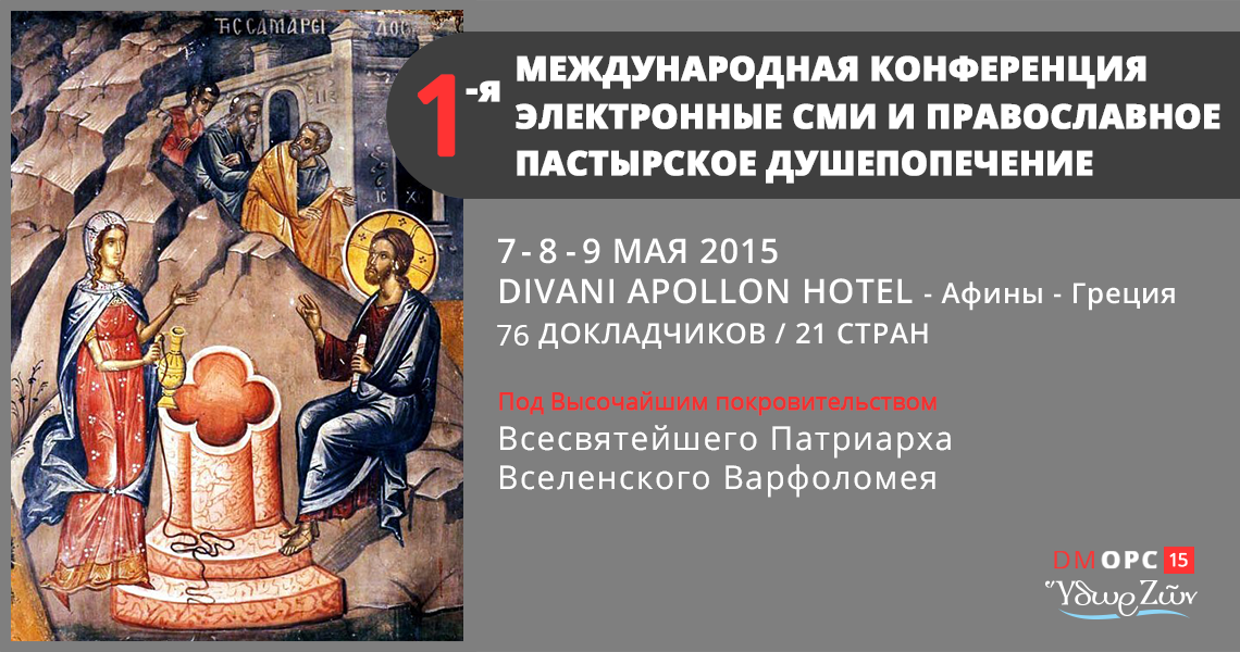 Читать ПолностьюDMOPC15 организуется интернет-сайтом www.pemptousia.gr и интернет-порталами www.bogoslov.ru и